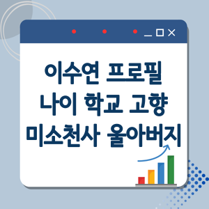 이 글에서는 트로트 가수 이수연의 프로필과 나이, 학교, 고향, 그리고 그녀가 '미소천사'로 불리는 이유와 아버지에 대한 사연 등을 자세히 살펴보고자 합니다. 이를 통해 이수연이라는 인물에 대한 이해를 높이고, 그녀의 음악 세계에 대한 관심을 불러일으키고자 합니다.